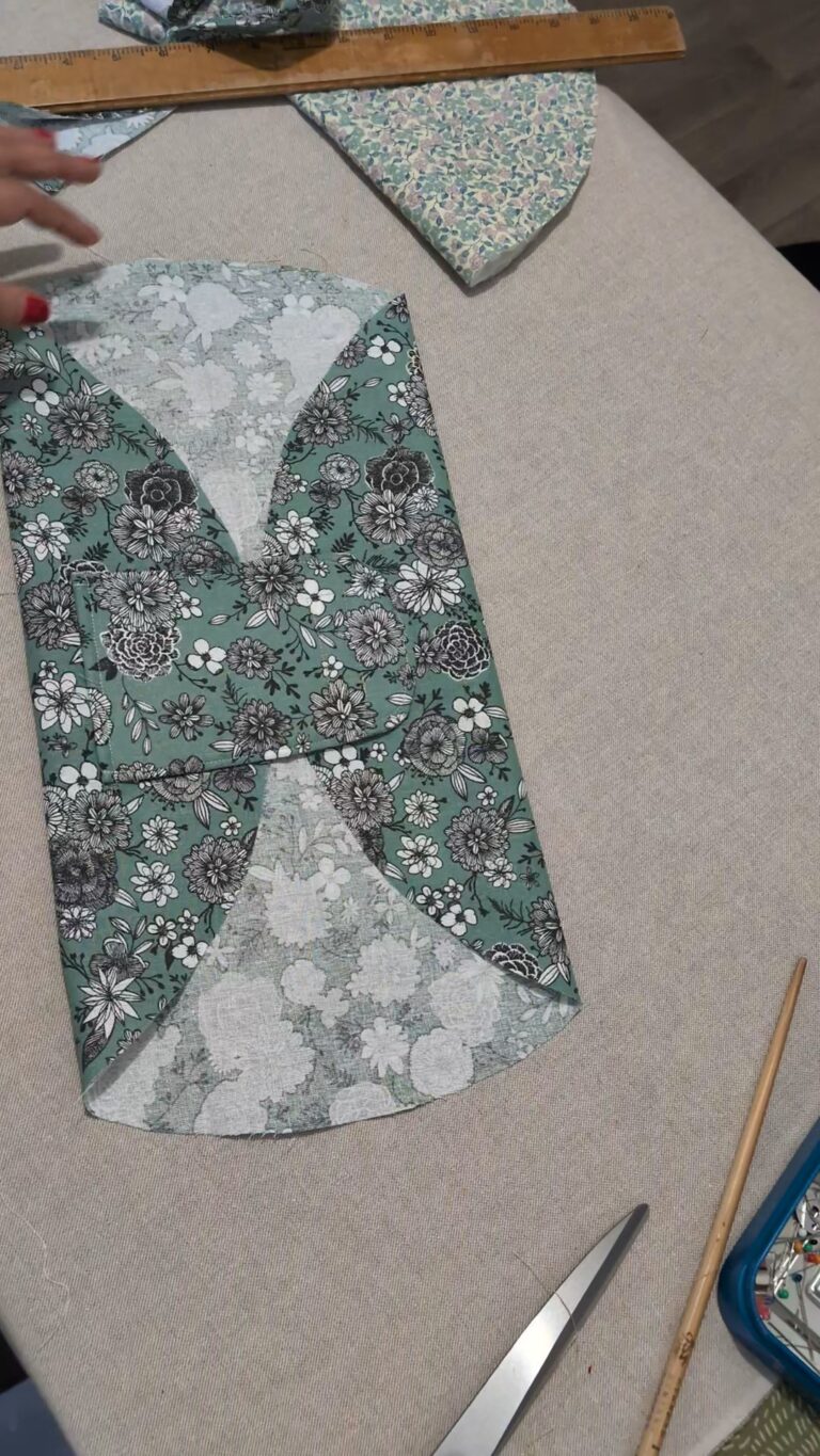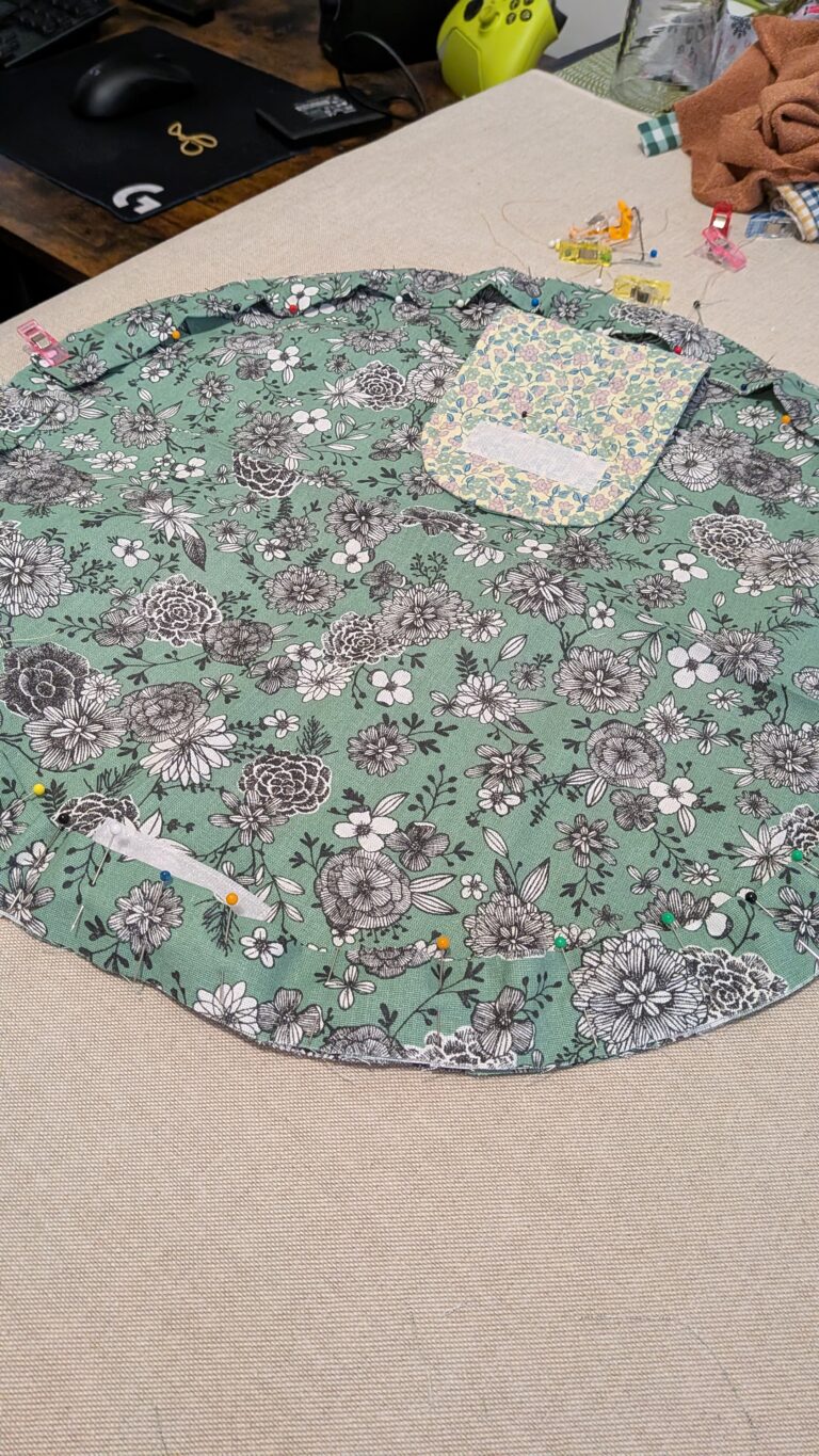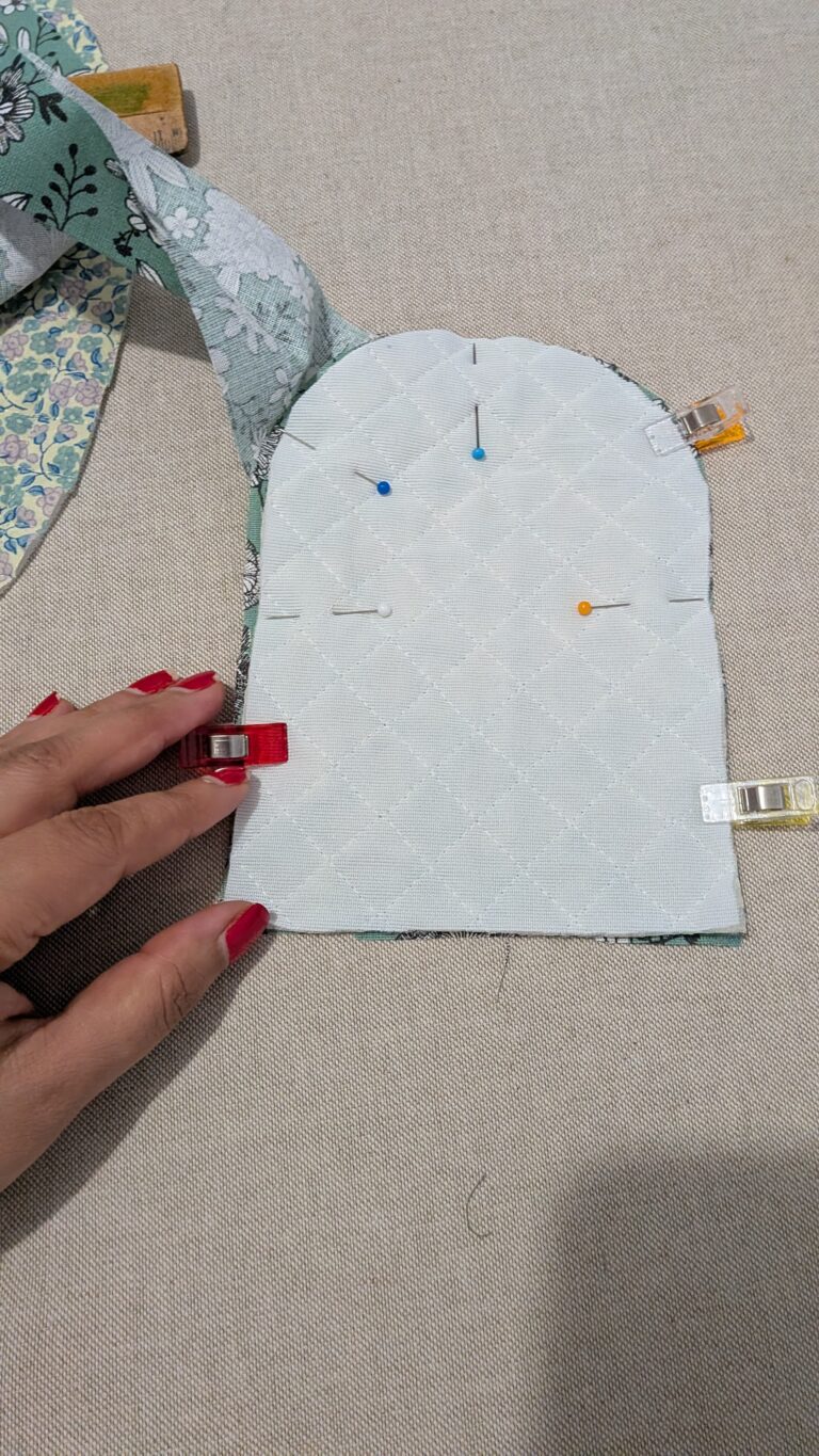 Épinglez tout autour, en veillant à laisser une ouverture d’environ 10 cm pour retourner la trousse
