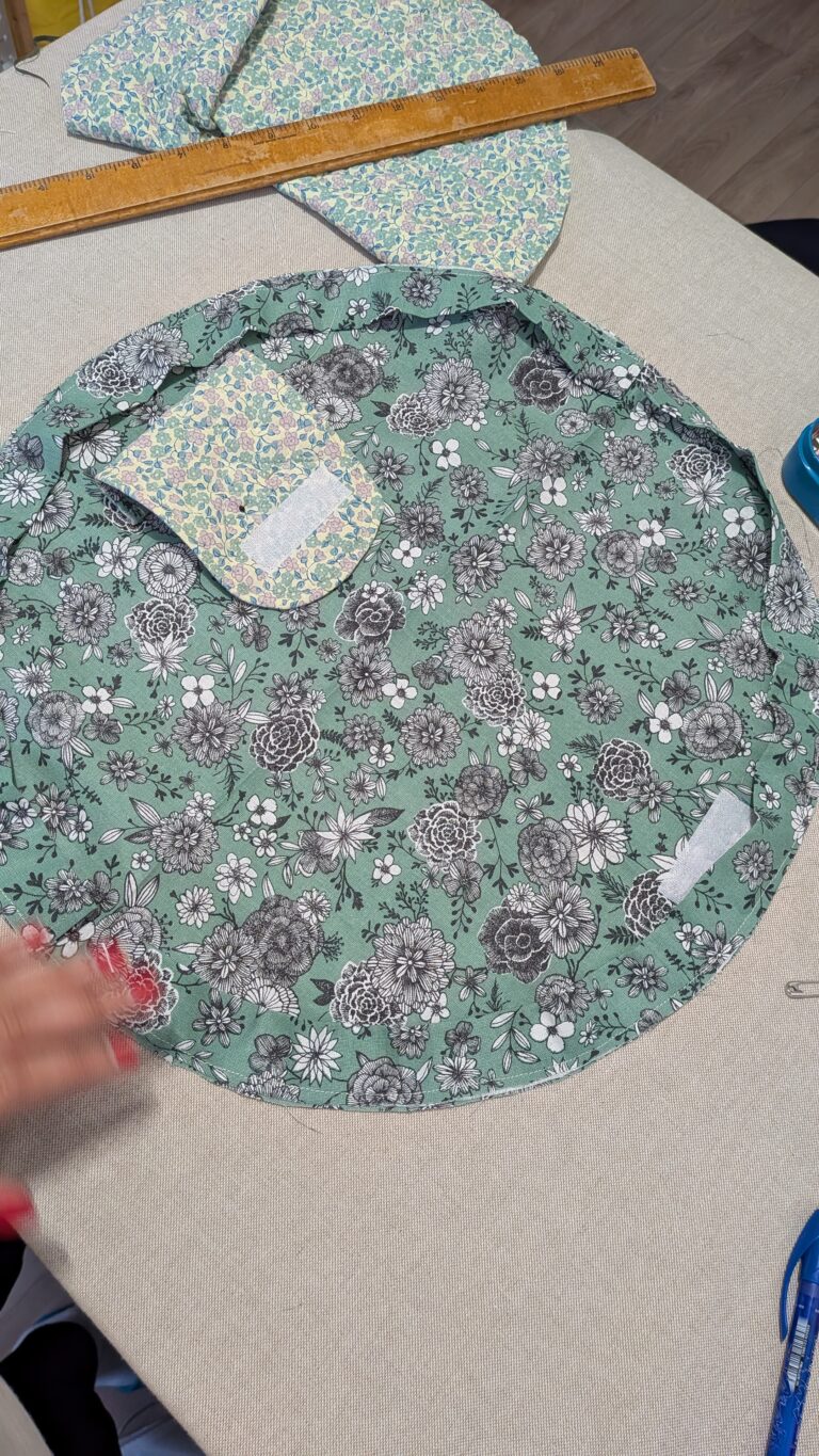 Sur le cercle extérieur, créez une seconde moitié du cercle en pliant et en repassant, du côté opposé au rabat et au scratch