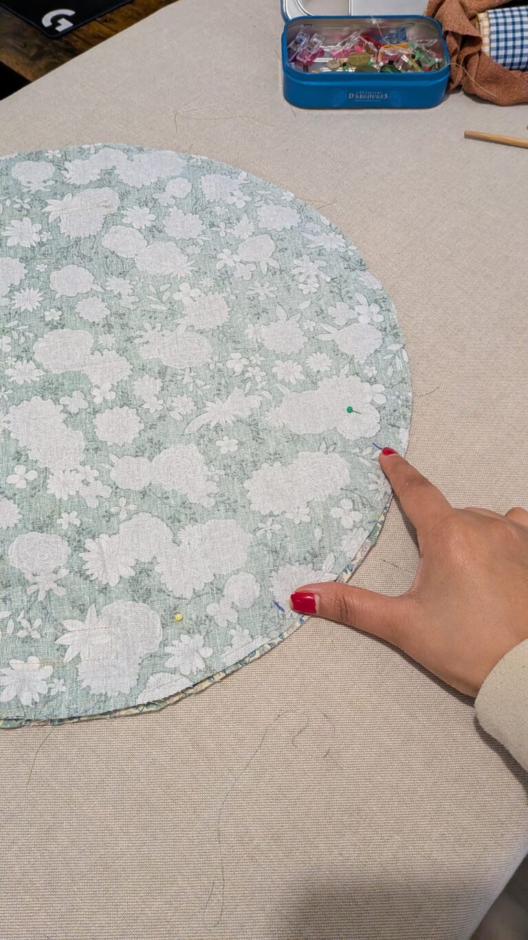 Réalisez une surpiqûre tout autour du cercle, ce qui permet à la fois de fermer l’ouverture et de donner une finition nette à la trousse