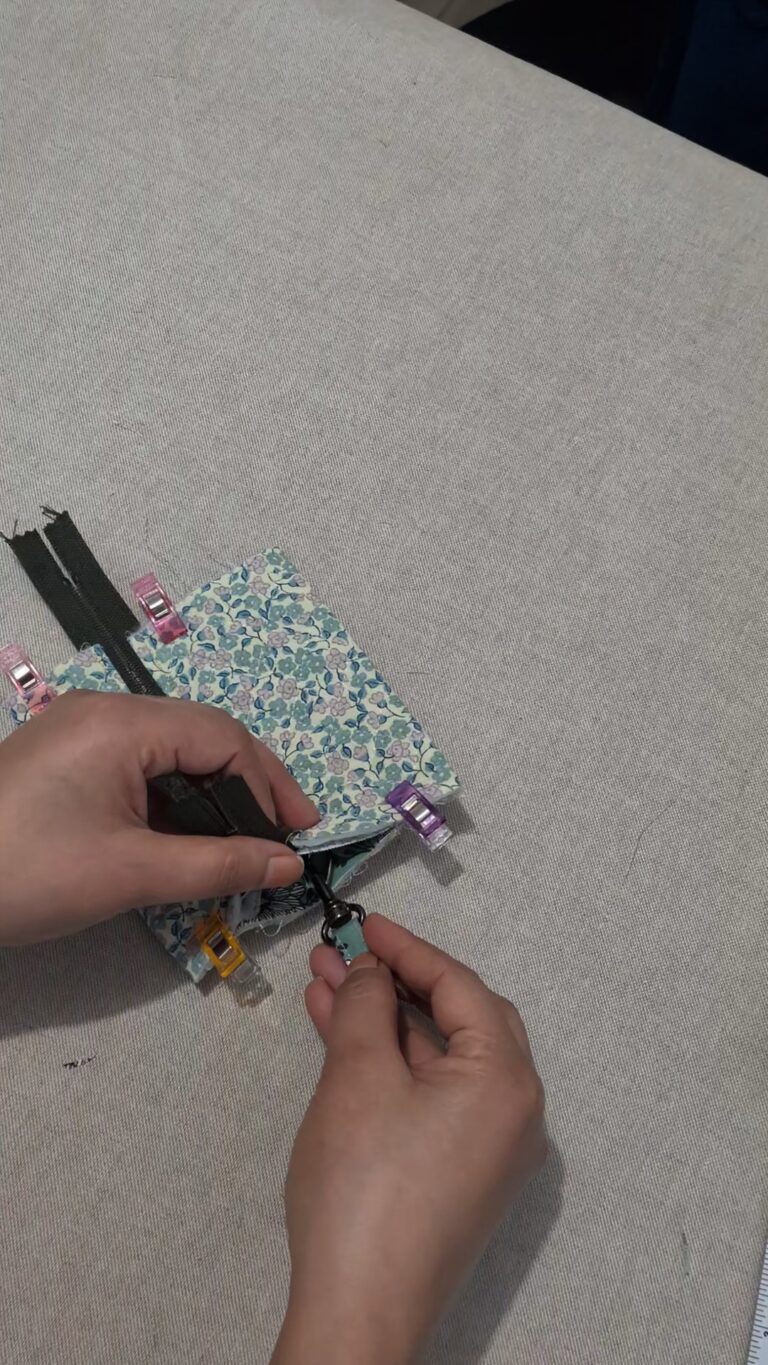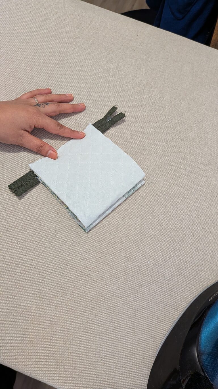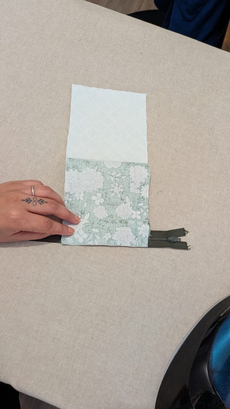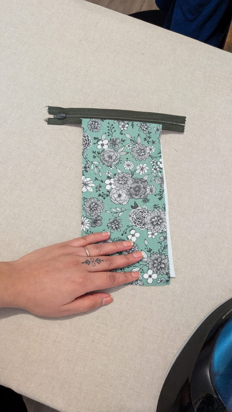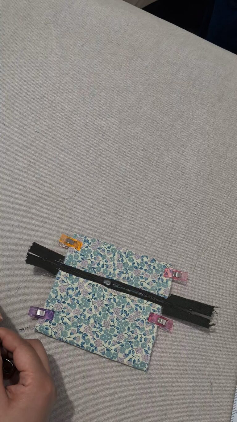 Positionnez la fermeture éclair endroit contre endroit sur l’un des bords longs (26 cm)